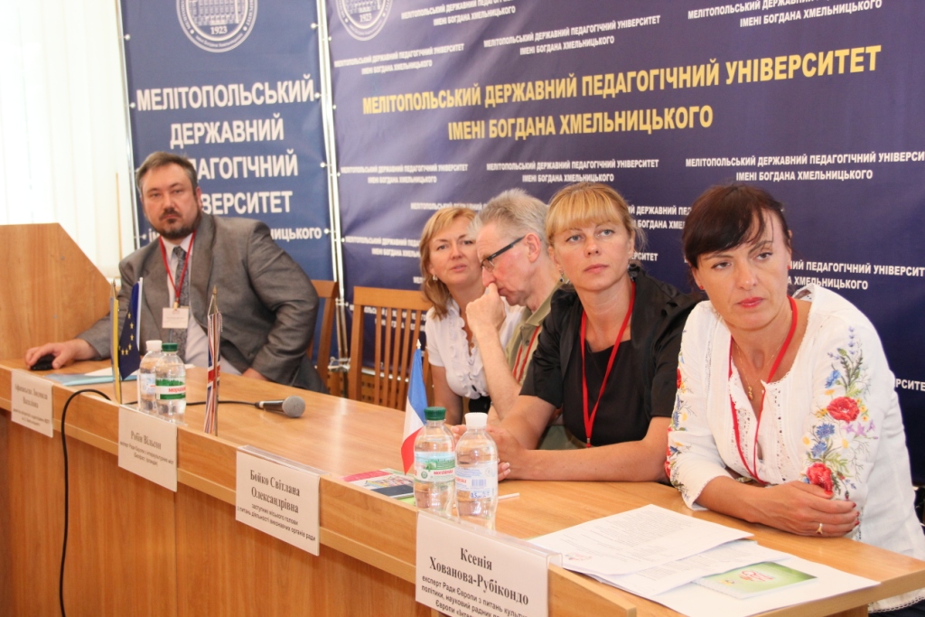 28 серпня 2015 року в Мелітополі проходив форум «Переосмислення концепції інтеркультурного міста у контексті українського сьогодення», у якому взяли участь представники європейських країн та міст України. Перейняти перший в Україні досвід розробки міської моделі міжкультурної інтеграції приїхали гості з Павлограда, Прилук, Ніжина, Запоріжжя, Кременчука, Сум, Луцька та ін. Під час роботи інтерактивного семінару «Перегляд концепції інтеркультурного міста в умовах української дійсності» було обговорено актуальність концепції інтеграції вимушених переселенців в Україні, розглянуто особливості процесу в українському контексті у порівнянні з європейським досвідом. Модератор семінару Афанасьєва Л.В. розповіла присутнім про історію впровадження проекту інтеркультурних міст у Мелітополі, про проблеми і надбання на шляху до реалізації цієї програми та розробки першої в Україні міської моделі міжкультурної інтеграції. Вона наголосила на тому, що однією з головних особливостей нашого міста, як інтеркультурного, є саме наявність конкретного плану міжкультурної інтеграції Мелітополя. План складається з п’яти напрямків, над кожним з яких працювала окрема група експертів з представників МДПУ, національних меншин та міської влади. Під час експрес-брифінгу ректор МДПУ Молодиченко В.В. зазначив, що головне завдання університету у подальшій реалізації проекту він вбачає у впровадженні двох основних складових: по-перше, підготовка студента в аксіологічній сфері, оскільки він повинен розуміти свою значимість в інтеркультурному середовищі, і, по-друге, професійна підготовка педагога, який здатний впроваджувати науково-методичні розробки у школі, де виховується і формується підростаюче покоління. За програмою форуму презентація плану міжкультурної інтеграції м. Мелітополя на 2015-2020 рр. відбулась у Мелітопольському державному педагогічному університеті імені Богдана Хмельницького, провідні викладачі якого стали авторами проекту. Про особливості кожного з напрямків докладно розповіли розробники інтеграційних тем: «Міжкультурна свідомість, освіта та міжкультурне спілкування» (Ігор Єлісєєв, Валенти Молодиченко, Ганна Стаценко), «Активізація громадської діяльності, економічне та інформаційне забезпечення інтеркультурного розвитку» (Світлана Бойко, Олена Арабаджи, Наталя Козирятська), «Інтеркультурне планування і облаштування креативного міського простору (Любов Кириленко, Андрій Орлов, Олександр Сорокін), «Привітальна політика міста та культурно-духовні практики громади (Наталя Фалько, Олена Троїцька, Михайло Бріцин), «Туризм і краєзнавство як чинники як чинники міжкультурної інтеграції міста (Лейла Ібрагімова, Ірина Арсененко, Віктор Харченко). Афанасьєва Л.В. зазначила, що проаналізувавши завдання, зазначені в стратегії розвитку, було вибрано декілька напрямків і адаптовано їх до українських реалій. У процесі створення плану лабораторія соціологічних досліджень МДПУ, як ініціатор проекту, стала основним генератором ідей і розробником стратегій і методів впровадження міської політики. Протягом декількох останніх років члени проекту активно й тісно співпрацювали з владою та етнічними меншинами нашого міста. Лабораторія здійснювала поточний моніторинг та оцінювання ефективності взаємодії органів самоврядуванн