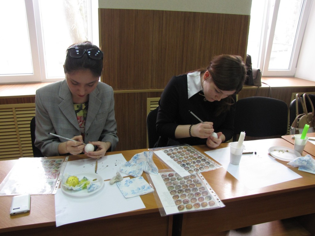 Так, 18 та 19 квітня в рамках проведення «Тижня психології» в ННІСПМО для студентів, викладачів та всіх охочих був проведений майстер-клас з арт-терапії «Писанка – оберіг життя». Своїм досвідом створення символічного оберегу поділилась Тамакова Тетяна Анатоліївна (арт-терапевт, тілесно-орієнтована терапевт, засновник і виконавчий директор ВГО «Арт-терапевтична асоціація», директор департаменту навчання ВГО «Українська асоціація лікарів-психологів», викладач кафедри загальної та медичної психології НМУ імені О.О. Богомольця). Відповідальними за створення творчої атмосфери були викладачі кафедри психології – к.психол.н., доцент Фалько Н.М., к.психол.н., ст. викладач Шевченко С.В., ст. викл. Варіна Г.Б., ст. викл. Каткова Т.А. Учасники майстер-класу мали можливість ознайомитися з технікою писанкарства, символічним значенням орнаменту, створити власну писанку. Кожна створена писанка – це окремий світ, усе тут «вимальовано» в певному порядку для того, щоб підтримувати спокій та рівновагу у власній душі. Кожен орнаментальний мотив і колір символізують послання, охоронну молитву за того, кому призначений оберіг. Студенти та викладачі активно долучилися до створення особистої писанки та відкрили в собі творчих здібностей.