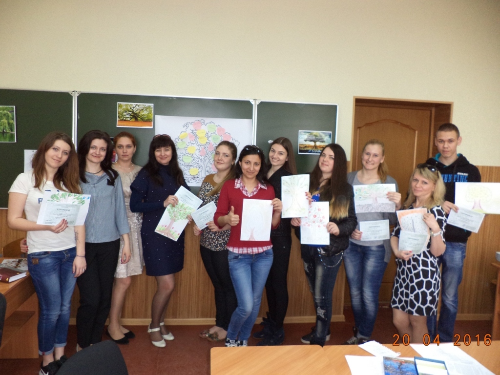 Щорічно з нагоди Всеукраїнського дня психолога (23 квітня) кафедра психології організовує Тиждень психології. 2016 рік не став винятком. 20 квітня доцентом Прокоф’євою О.О. та доцентом Царьковою О.В. було проведено майстер-клас «Дерево як образ «Я» Ведучі майстер-класу познайомили студентів та викладачів ННІ СПМО з особливостями архетипу світового дерева, продемонстрували елементи глибинної психокорекції, арт-терапії, зокрема ізо-терапії, групової роботи з асоціативними метафоричними картами, провели релаксаційну техніку «Ліс». Майстер-клас дав можливість прояснити особливості власної Я-концепції, поглибити процеси саморозкриття, розвинути вміння знаходити індивідуальні особливості й ресурси власної психіки. Матеріал підготувала Прокоф’єва О.О. |