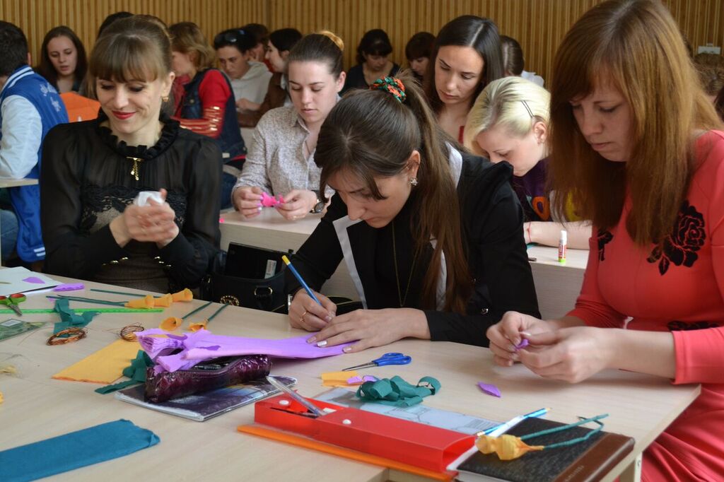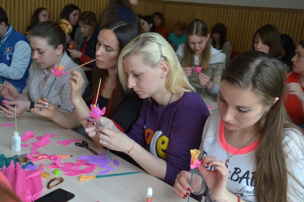 «Духовна весна» складалася з трьох етапів. Перший етап – «Світла весна» (презентація методик виготовлення паперових виробів) відбувся на базі ННІ СПМО для студентів денної та заочної форми навчання. У ході майстер-класу, який провела Яковенко І.О., учасники опанували технологію виготовлення паперових квітів.
