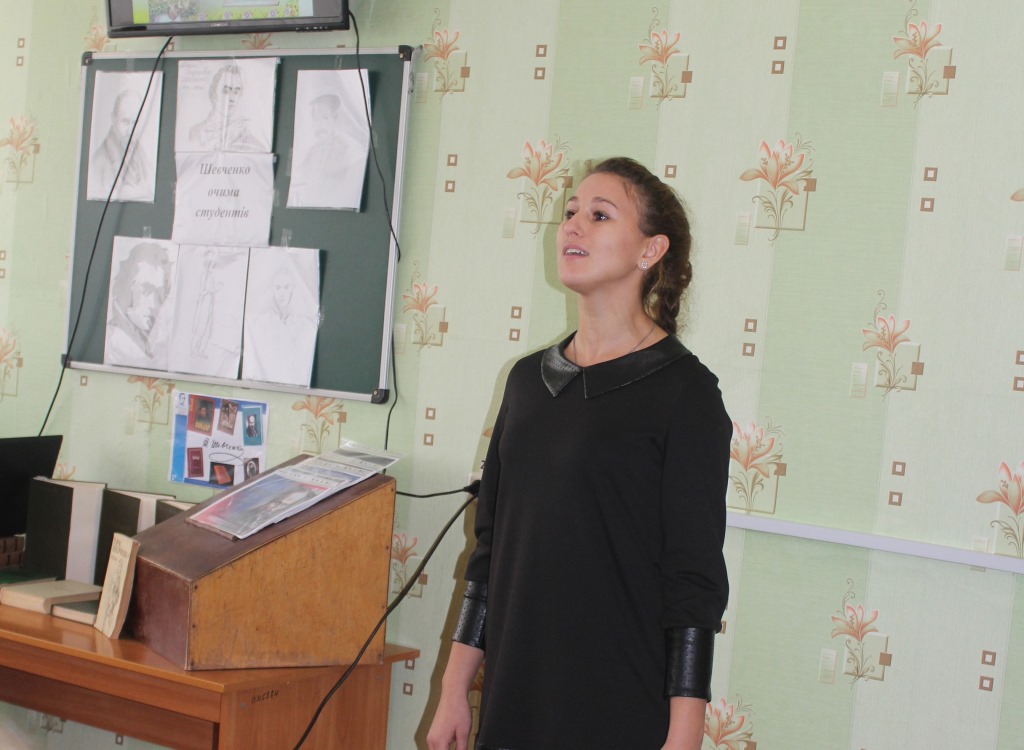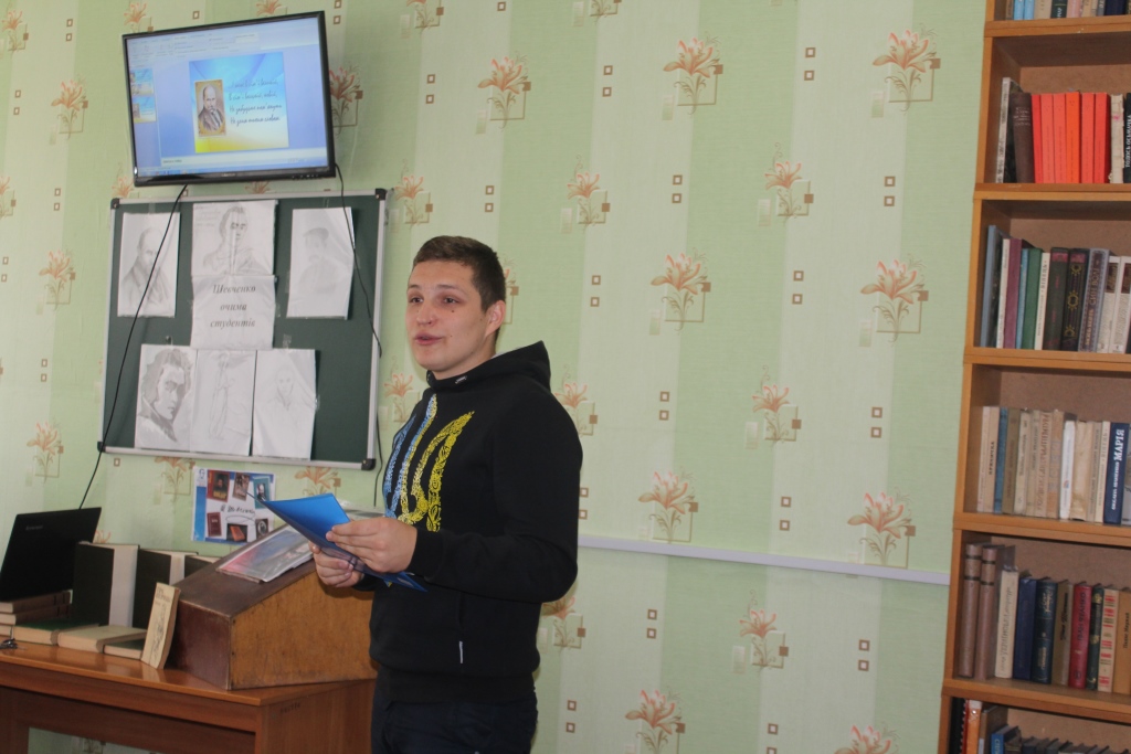 До урочистого відкриття конкурсу долучились студенти 1 курсу філологічного факультету та 3 курсу заочного відділення. Пісні про Кобзаря співали студентки 1 курсу Сьоміна Катерина та Мануілова Катерина. Вірші про творчість Шевченка декламували студенти заочного відділення 3 курсу спеціальності «Мова і література» (англійська) Вітрук Віктор, Литвиненко Анна, Хомич Ольга, Гаман Яна, Жуковська Дарина.