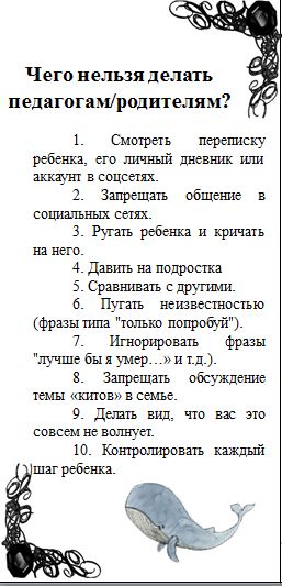 Також для цього заходу було підготовлено буклети, де було написано, що не можна та що треба робити, коли ви дізналися про участь підлітка у цій «грі». Наприкінці зустрічі організатори провели невеличкий тренінг, аби запобігти появі проблеми у житті студентів. Олеся Олексіївна та Ольга Ігорівна запропонували їм скласти список «10 причин, чому життя прекрасне» та «10 причин, чому я хороший». Також було наголошено на тому, що в Інтернеті існує деяка інтерпретація «Синього кита» – «Білий ведмідь». Ця гра також має 50 завдань, які навчать дитину бути самостійною, доброю та справжнім «скаутом».