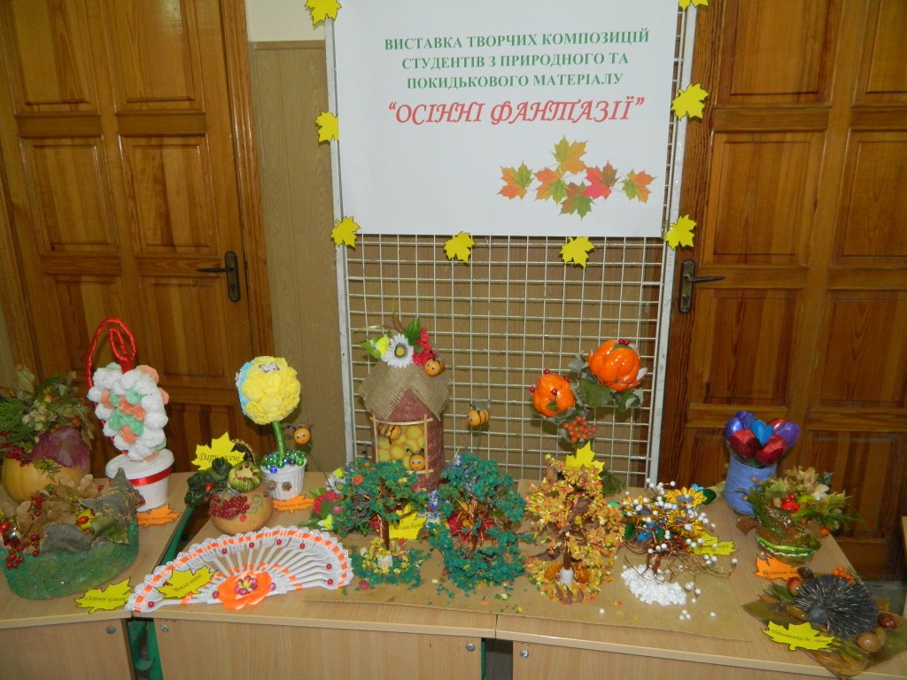Наступним етапом була презентація творчих композицій студентів із природного та покидькового матеріалу «Осінні фантазії», організатором якої є Вахняк Н.В. ‒ старший викладач кафедри соціальної роботи, соціальної педагогіки та дошкільної освіти Навчально-наукового інституту соціально-педагогічної та мистецької освіти Мелітопольського державного педагогічного університету імені Богдана Хмельницького, науковий куратор педагогічних досліджень у галузі дошкільної освіти, куратор студентської наукової лабораторії «Екологічна освіта для сталого розвитку».