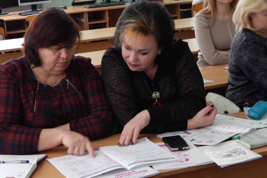 У рамках заходу к.психол.н., доц. Прокоф’євою О.О. була проведена соціодрама на тему «Діалог учасників інноваційних проектів». Соціодрама як метод групової роботи призначений для вирішення соціальних проблем суспільства, в рамках тренінгу – впровадження концепції нової української школи. Метою соціодрами було усвідомлення глибинного змісту обставин, в яких діють учасники інноваційних проектів, і усвідомлення можливих внутрішньогрупових і міжгрупових конфліктів.
