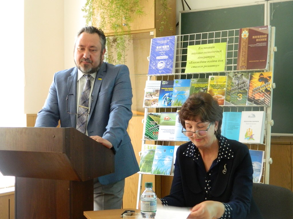 Всі учасники мали змогу ознайомитись з експозицією науково-методичної літератури «Екологічна освіта для сталого розвитку». Відповідальними за презентацію були Мелаш В.Д. – кандидат педагогічних наук, доцент кафедри початкової освіти Мелітопольського державного педагогічного університету імені Богдана Хмельницького, керівник студентської наукової лабораторії «Екологічна освіта для сталого розвитку», а також Саєнко Ю.О. – асистент кафедри початкової освіти ННІСПМО Мелітопольського державного педагогічного університету імені Богдана Хмельницького, куратор студентської наукової лабораторії «Екологічна освіта для сталого розвитку».