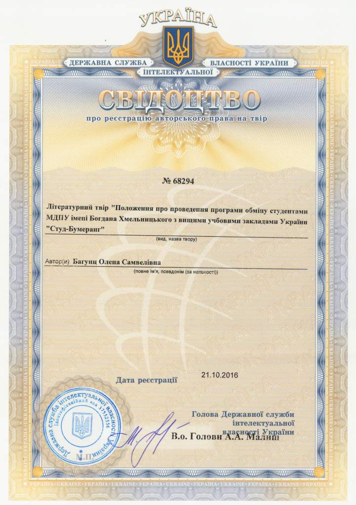 Вітаємо студентку 4 курсу Навчально-наукового інституту соціально-педагогічної та мистецької освіти – Олену Багунц, яка стала автором положення програми "Студ-Бумеранг".