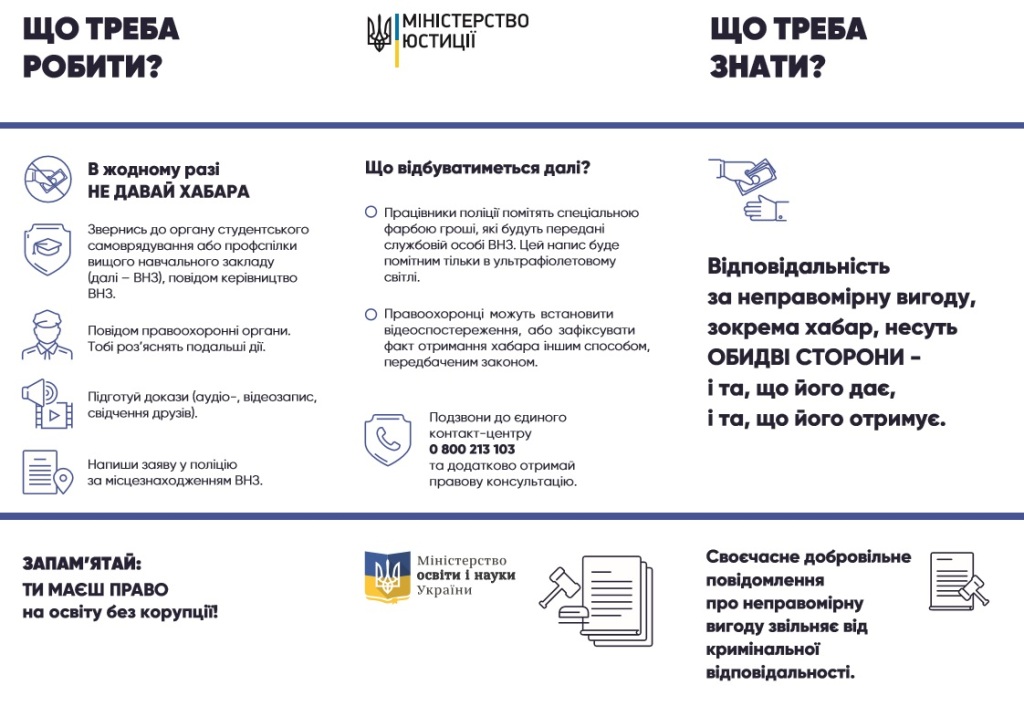 05 грудня 2017 року для студентів Мелітопольського державного педагогічного університету імені Богдана Хмельницького проведено семінар відповідальності за неправомірну вигоду, за отримання та давання хабара. Також під час право освітнього заходу обговорювались питання вирішення спорів (трудових, сімейних тощо) та захисту майнових прав.