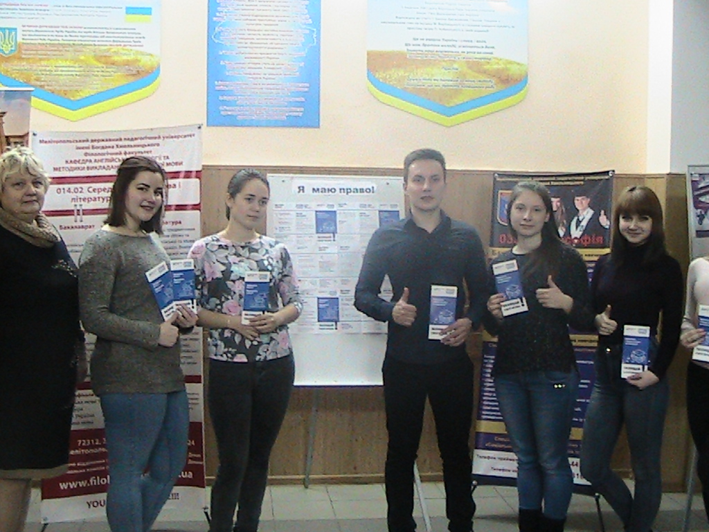 З метою поширення інформації про права громадян та рамках реалізації проекту Міністерства юстиції України «Я МАЮ ПРАВО» провідним фахівцем з питань запобігання та виявлення корупції спільно з заступником начальника Мелітопольського міськрайонного відділу держаної виконавчої служби Головного територіального управління юстиції у Запорізькій області Садомовою Наталією Володимирівною та головним спеціалістом Мелітопольського міськрайонного відділу держаної виконавчої служби Головного територіального управління юстиції у Запорізькій області Шевелєвою Світланою Євгенівною 21 лютого 2018 року для студентів кафедри право Мелітопольського державного педагогічного університету імені Богдана Хмельницького проведено семінар діяльності Державної виконавчої служби та запобігання корупції.
