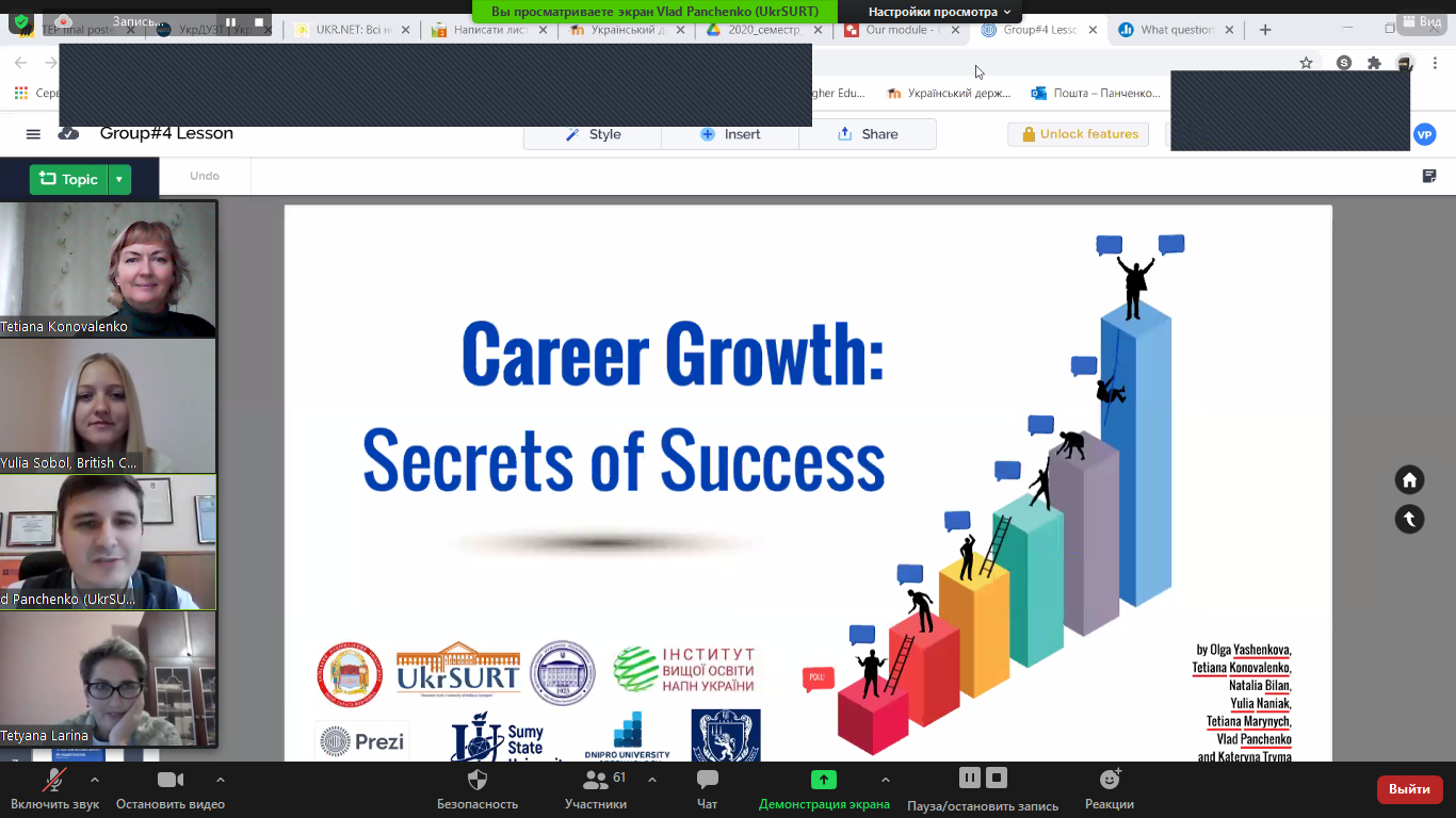 Викладачі нашого університету Тетяна Коноваленко, Ольга Гончарова і Анастасія Яковенко на чолі з ректором Анатолієм Солоненком взяли участь у вебінарах для викладачів та топ-менеджменту десяти українських вишів. Долучилась до вебінарів і голова НМР університету Наталя Мілько.