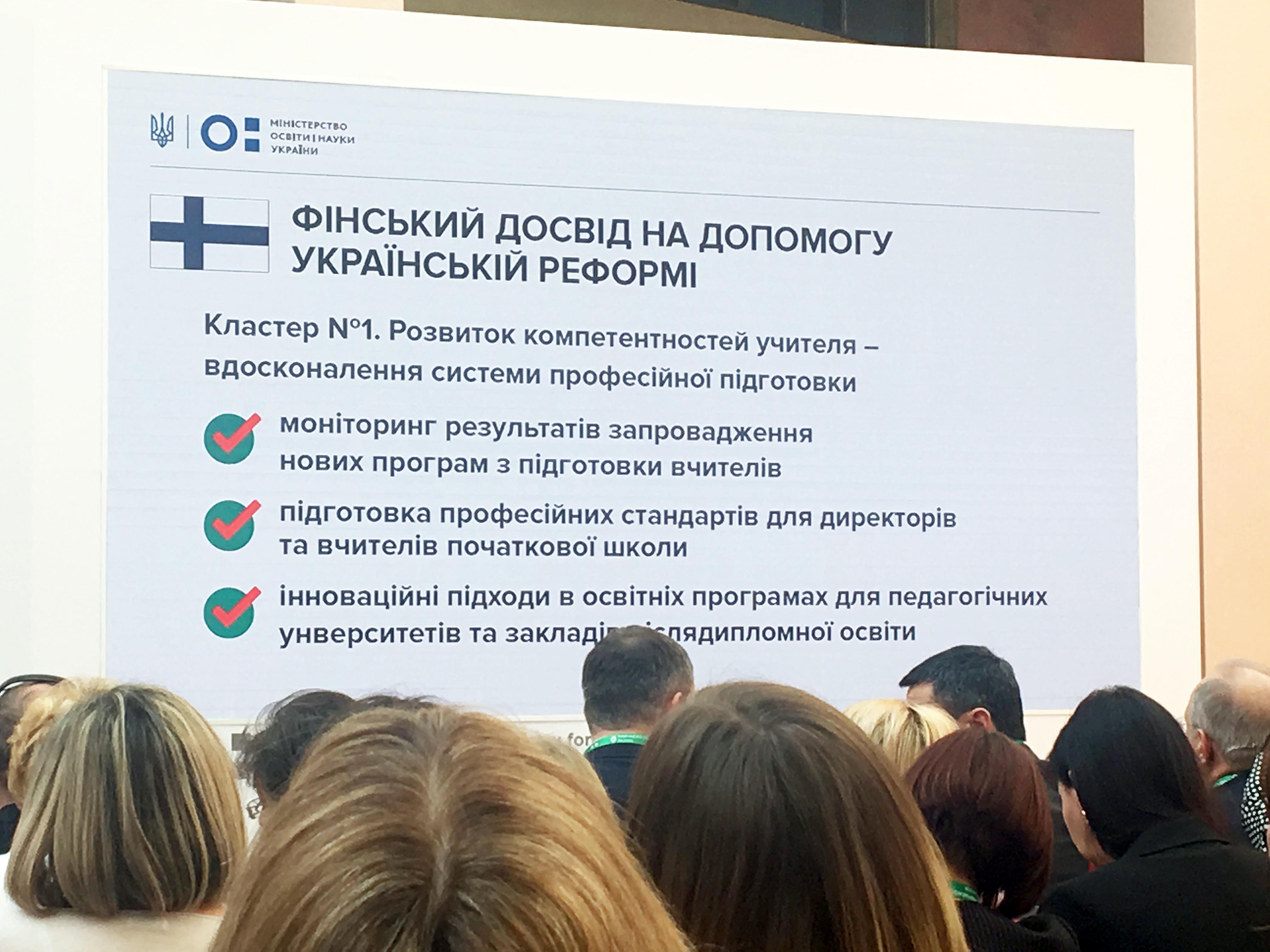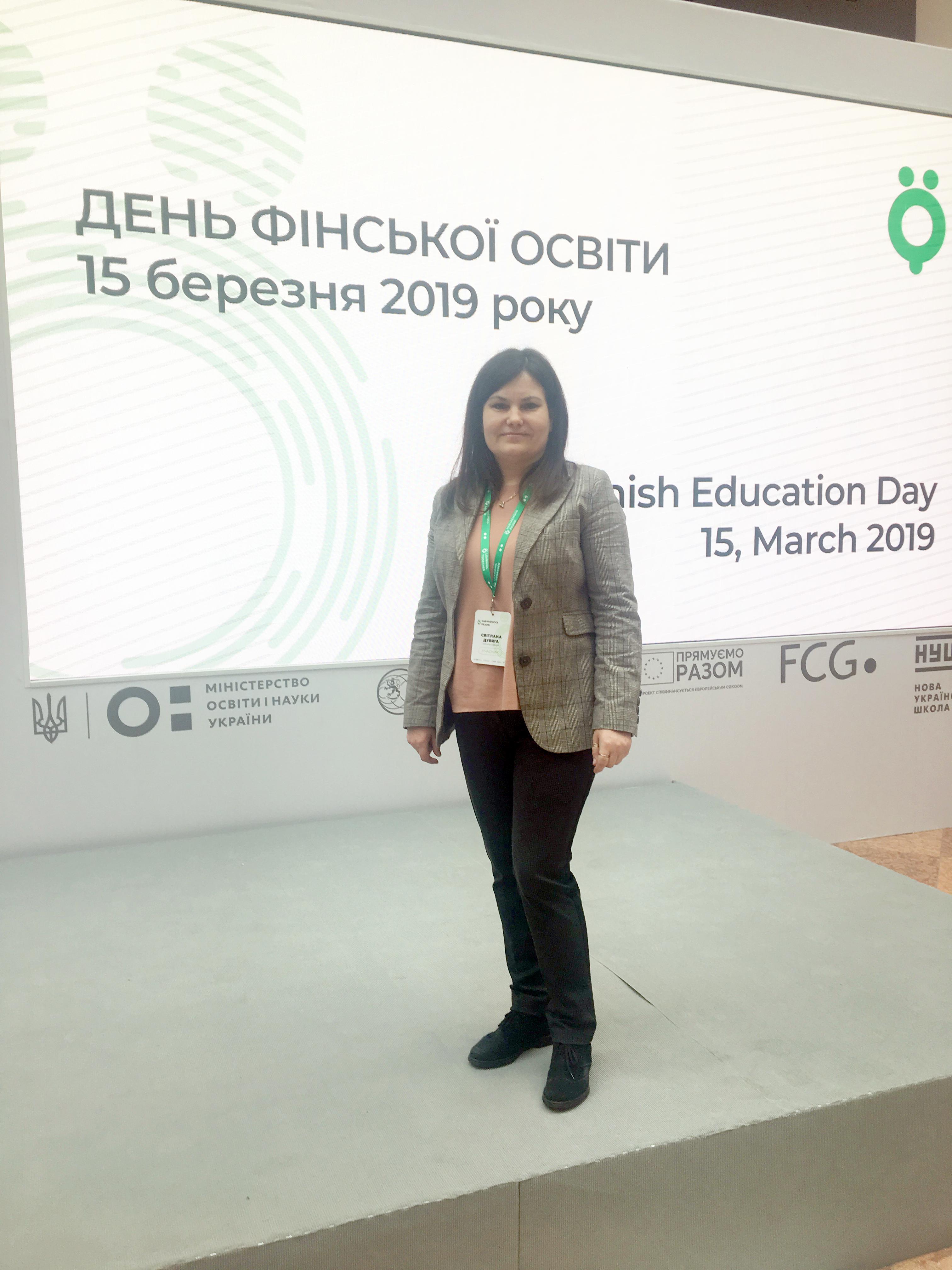 Дубяга С.М., завідувач кафедри початкової освіти, була запрошена на презентацію проекту та затвердження плану роботи на найближчий рік. Цей захід відбувся 15 березня 2019 року в НСК «Олімпійський» (м. Київ) за участю Міністра освіти і науки України Лілії Гриневич та Генерального директора Фінської національної агенції з освіти Оллі-Пекка Хайнонена.