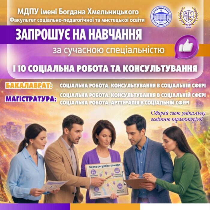 🏛✨ Факультет соціально-педагогічної та мистецької освіти МДПУ імені Богдана Хмельницького запрошує на навчання за сучасною та суспільно важливою спеціальністю