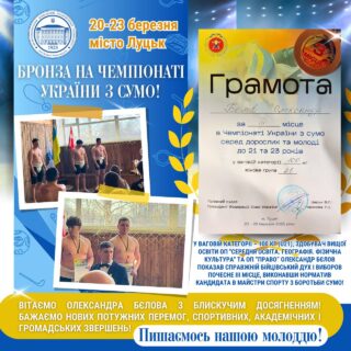 🥳🇺🇦Вітаємо Олександра з блискучим досягненням! Бажаємо нових перемог, спортивних, академічних і громадських звершень!