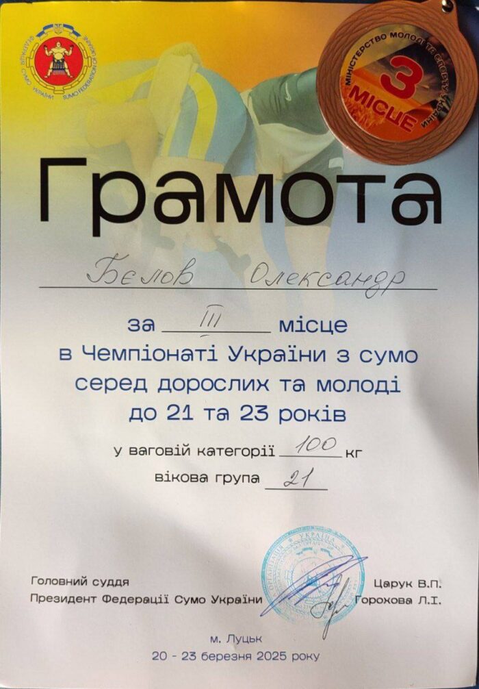 🥉🔥У запеклих поєдинках у ваговій категорії – 100 кг (U21) Олександр показав справжній бійцівський дух і виборов почесне ІІІ місце, виконавши норматив кандидата в майстри спорту з боротьби сумо!
