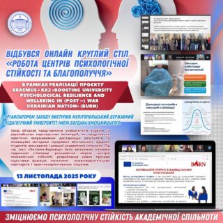 📌досвід роботи в умовах релокації, застосування інноваційних психологічних інструментів та формування безпечного середовища в університетських спільнотах.