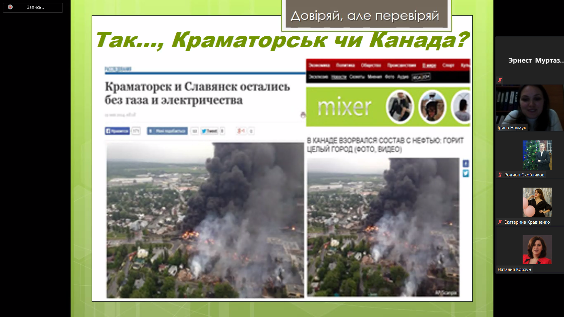 Онлайн майстер-клас «Зберігайте спокій і перевіряйте інформацію» для молоді міста району та області