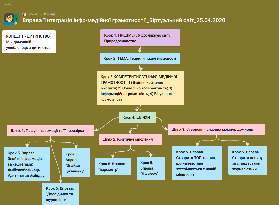 Вчителям запропоновано спільно скласти карту компетентностей інфо-медійної грамотності за допомогою онлайн-дошки Padlet https://padlet.com та порівняти її із картою медіакомпетентностей від IREX.