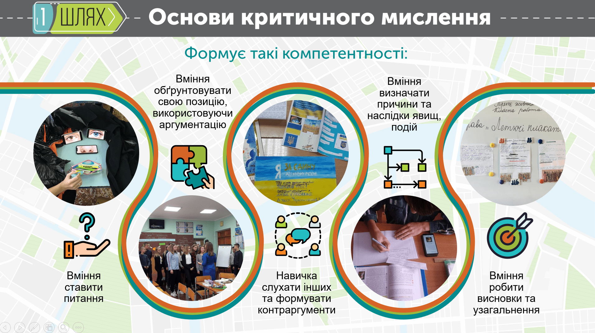 В інформаційному блоці Модулю 1 «Медіаосвіта та медіаграмотність. Робота з поняттями і сутністю медіаграмотності» за допомогою презентації Power Point учасники познайомилися із нормативними документами впровадження медіаграмотності, основними поняттями та сутністю медіаграмотності, проаналізували причини актуальності медіаграмотності в Україні, визначили роль критичного мислення і важливість дотримання критичної дистанції по відношенню до медіа, познайомилися з уміннями, які необхідно набути вчителеві для опанування компетентностей медіаграмотності.