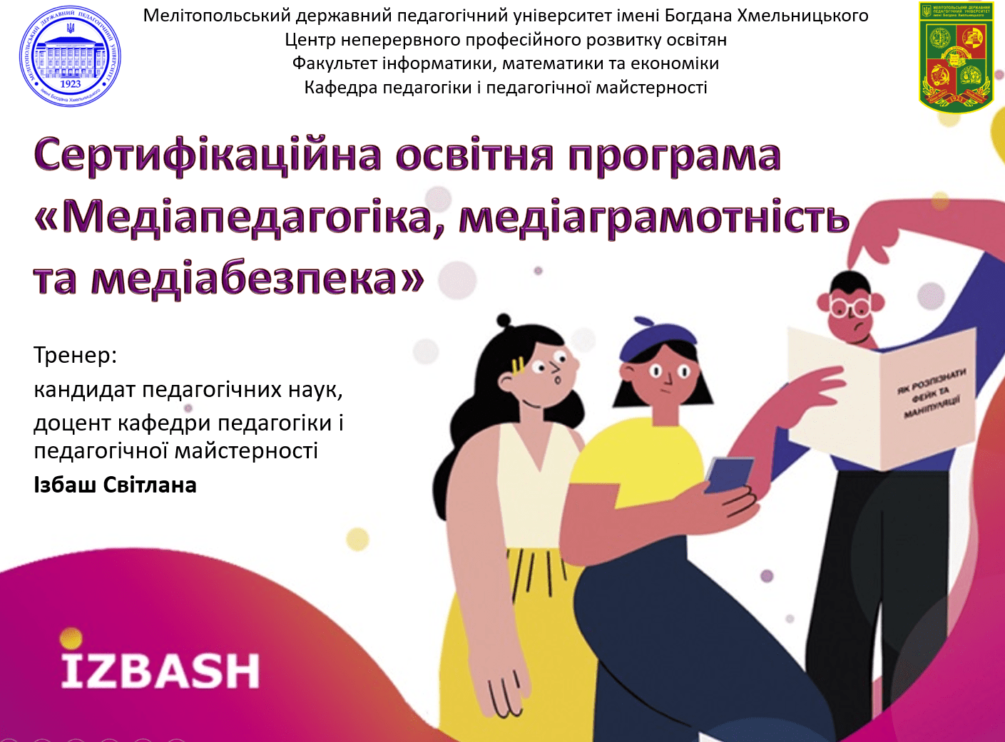 Нагадаємо, що дві робочі групи викладачів МДПУ імені Богдана Хмельницького є учасниками проекту «Вивчай та розрізняй: інфо-медійна грамотність» (напрямок ЗВО). З жовтня 2019 року по лютий 2020 року брали участь у навчальних заходах першої, другої хвиль, а також Зимової школи проекту та мали можливість отримати потужну практичну підготовку із впровадження медіаграмотності в освітній процес.