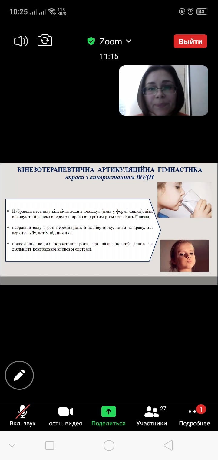 Розробник вебінару запропонувала варіанти дихальної, артикуляційної, пальчикової гімнастик, Суджоку-терапії та пасивного ігрового масажу.