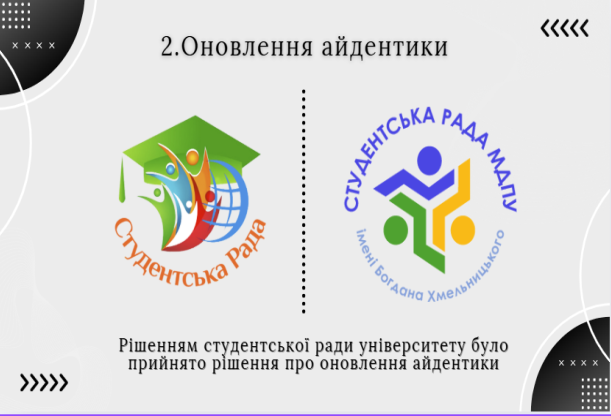 Одним із напрямків діяльності студентської ради у 2024 році стала робота над оновленням айдентики студентського самоврядування для створення сучасного і впізнаваємого бренду студентства МДПУ імені Богдана Хмельницького. Це включало створення нового логотипу, розробку візуальних матеріалів для заходів, а також популяризацію бренду через соціальні мережі тощо.