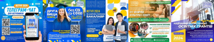 Протягом 2024 року отримали оновленого вигляду Viber-чати «Вступник МДПУ імені Хмельницького» для цілодобової інформаційної обізнаності, консультування та кураторства вступників 2024 року. Оновлено брендовий проєкт для вступників з онлайн-підготовки до НМТ – «Клуб успішних вступників 2024», який вже третій рік поспіль став актуальною альтернативою підготовчих курсів та функціонує на двох онлайн платформах: офіційній сторінці Вступника та Телеграм-каналі. Проведено потужну таргетовану рекламну кампанію на платформах соціальних мереж Фейсбук, Інстаграм та Ютуб усіх спеціальностей та рівнів здобуття вищої освіти з ціллю залучення до вступу потенційних абітурієнтів 2024 року.