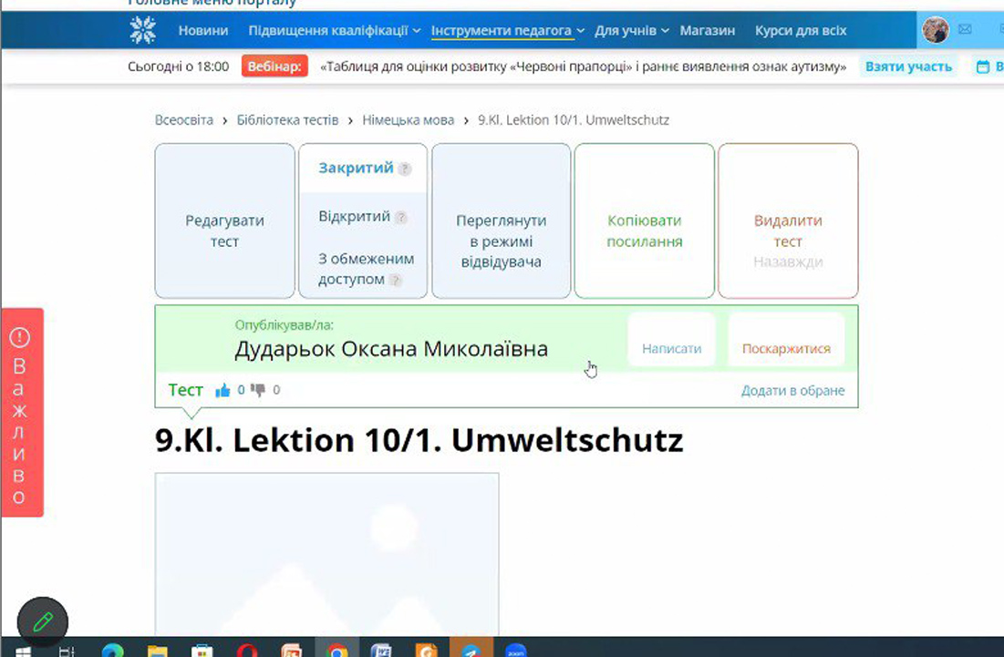 Пані Оксана проконсультувала студентів з питань організації освітнього процесу в школі, наголосила на основних моментах проведення занять як при асинхронному, так і при синхронному навчанні. Здобувачі вищої освіти філологічного факультету отримали можливість перейняти досвід та обговорити в контекстах як змішаного (blended learning), так і дистанційного навчання (distance learning) такі актуальні методичні проблеми, як: