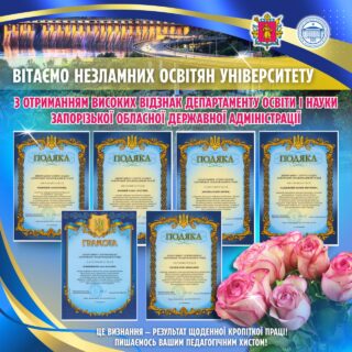🏆💐Відзнаками Департаменту освіти і науки Запорізької обласної державної адміністрації за вагомий особистий внесок у розвиток вищої освіти України, багаторічну сумлінну й плідну науково-педагогічну працю, високий професіоналізм із нагоди Дня працівника освіти України нагороджуються: