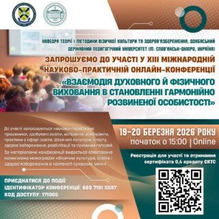 📍 Кафедра теорії і методики фізичної культури та здоров’язбереження, Донбаський державний педагогічний університет (м. Слов’янськ-Дніпро, Україна)