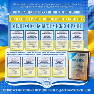 👏🏻🎓За професійну майстерність, патріотизм і внесок у розвиток освіти Подяку виконавчого комітету Мелітопольської міської ради Запорізької області отримує весь колектив нашого незламного університету!