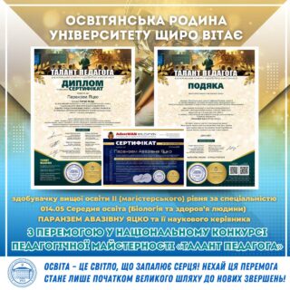 🥳👏🏻 Щиро вітаємо Паранзем та її наукового керівника – доцента факультету природничих наук! Бажаємо нових відкриттів, наукових досягнень, професійного зростання і натхнення!