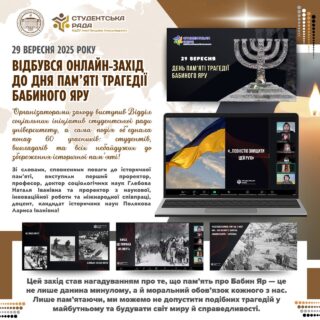 📚👩🏼💼перший проректор, професор, доктор соціологічних наук — Глебова Наталя Іванівна, яка підкреслила, що пам’ять про трагедію Бабиного Яру є важливою складовою формування національної свідомості та морального орієнтира для сучасної молоді;