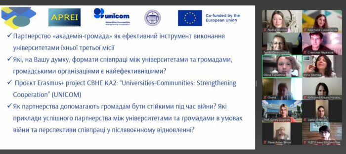 🇪🇺📌 Окрему увагу було приділено презентації міжнародного проєкту Erasmus+ CBHE KA2: “Universities-Communities: Strengthening Cooperation” (UNICOM), спрямованого на посилення взаємодії між університетами та громадами.