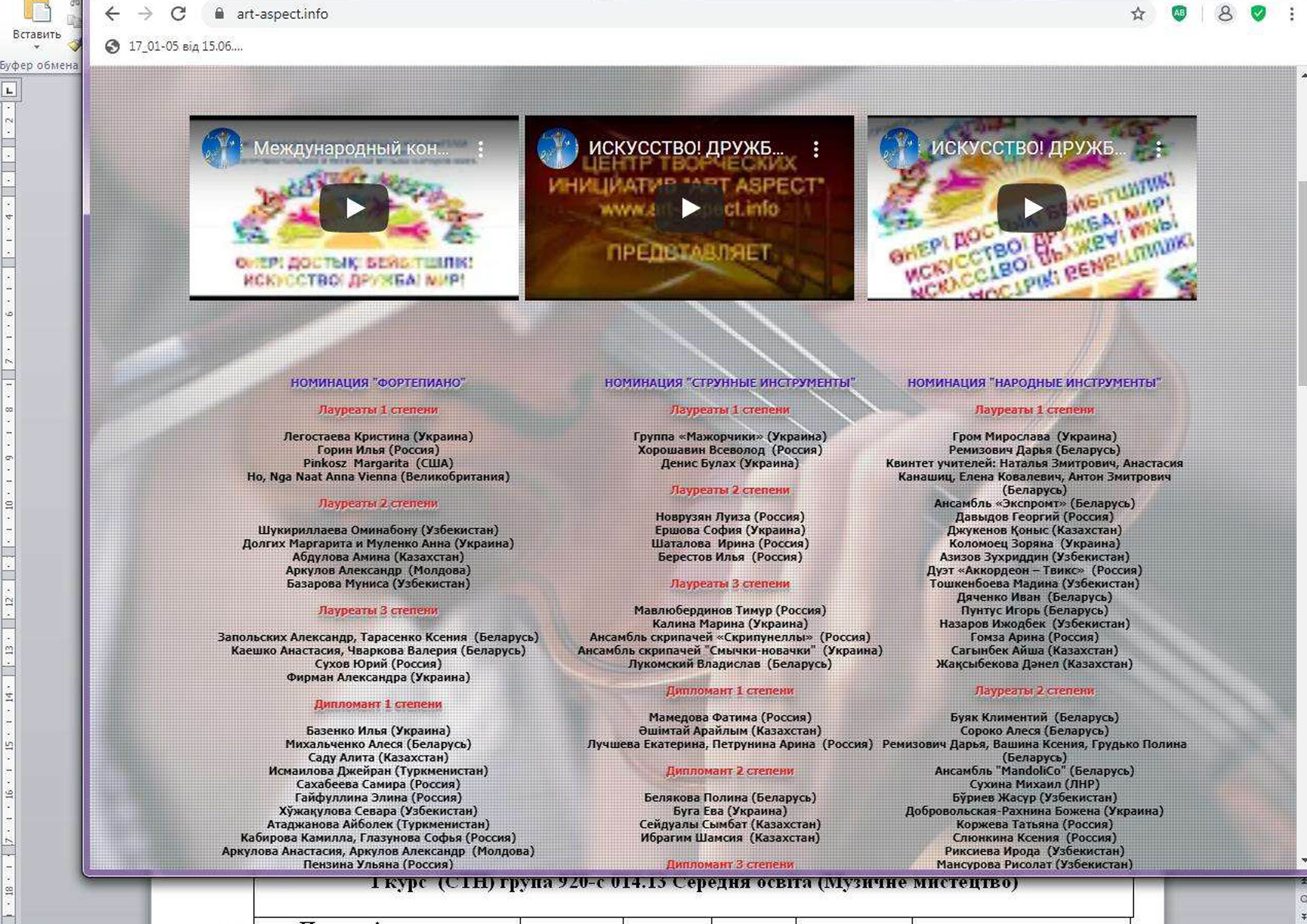 в сфері інтерпретації інструментальної та пісенної музики народів світу».