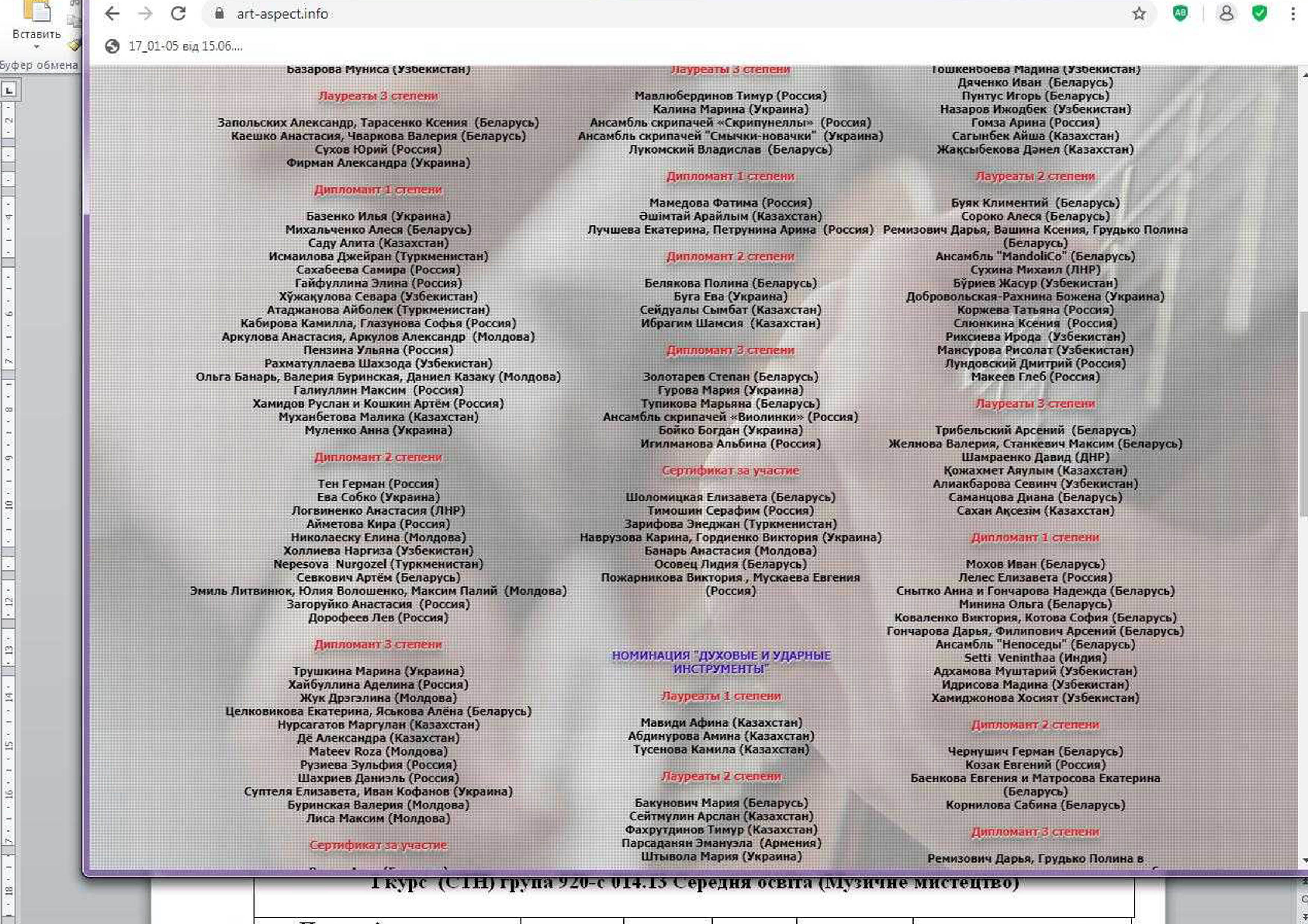 студентку І курсу магістратури заочної форми навчання ЛЕГОСТАЄВУ Кристину, керівник – старший викладач кафедри інструментального виконавства та музичного мистецтва естради Власенко Е.А. – диплом Лауреата І ступеня;