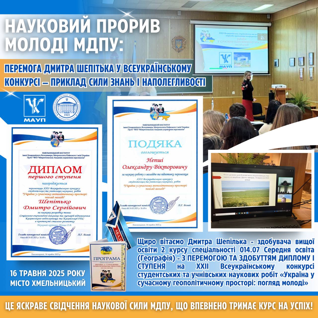 🏆🇺🇦Ця перемога — це не лише особисте досягнення, а яскраве свідчення того, що МДПУ імені Богдана Хмельницького— осередок наукової могутності і стійкості в умовах викликів часу!