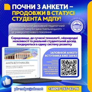 📲🇺🇦 Заповнюй анкету вступника вже зараз та отримуй індивідуальний супровід приймальної комісії від етапу реєстрації до зарахування!