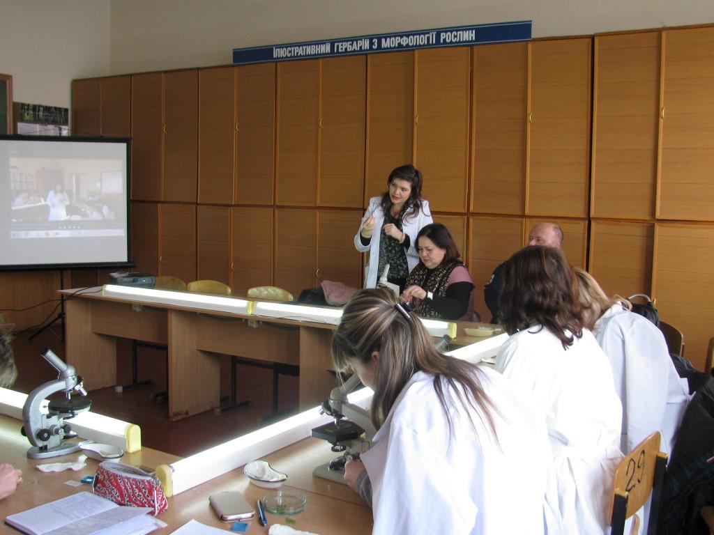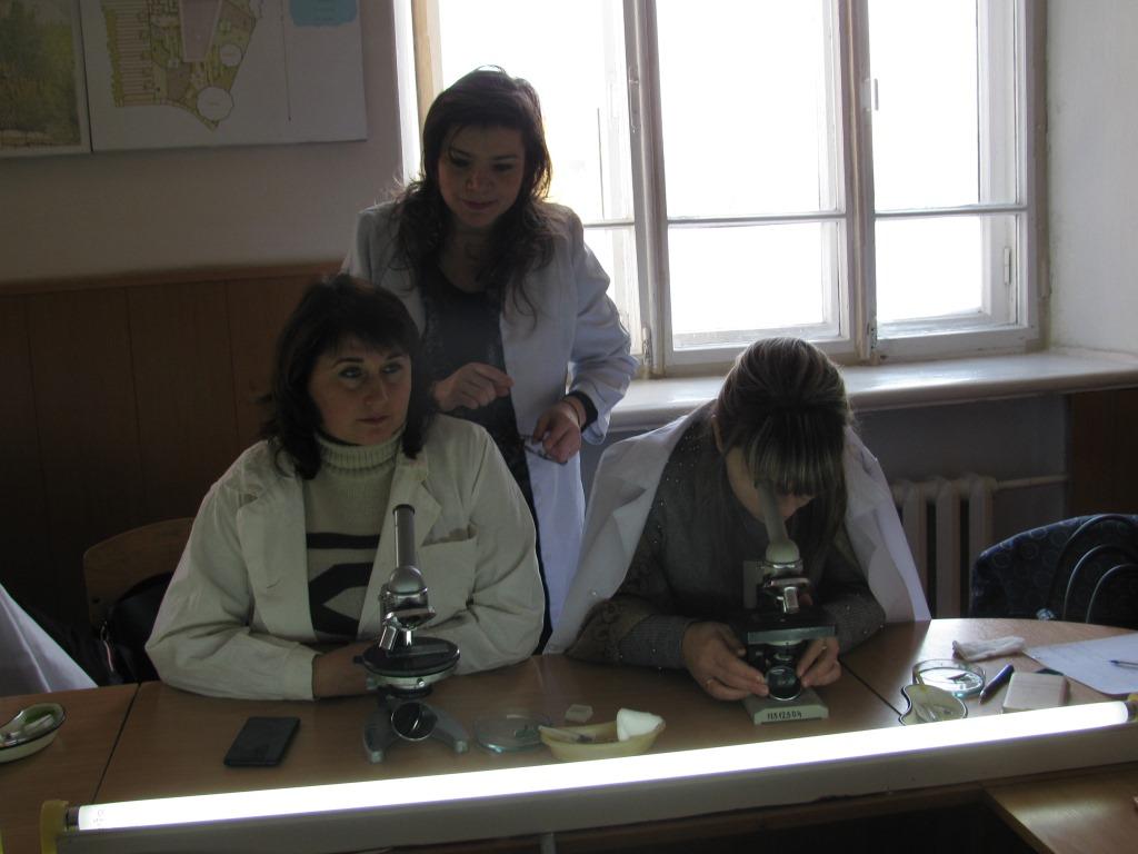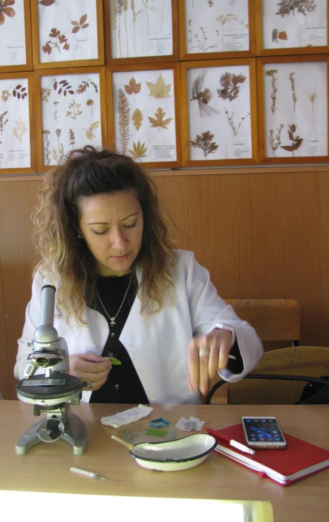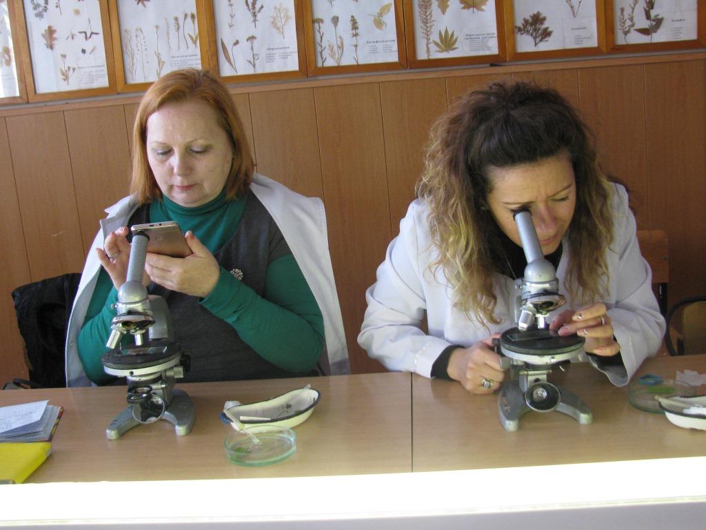 Вчителі біології та природознавства м. Мелітополя (ліцей №5, НВК №16, ЗОШ №23, №1, №7, №22, №25, №24, №13) мали можливість ознайомитись з кількісно-анатомічними методами вивчення покривних тканин, які використовуються в біології. Вони з інтересом власноруч виготовили тимчасові мікропрепарати покривної тканини кімнатних рослин, підрахували кількість продихових комплексів в полі зору, виявили різницю між адаксіальною та абаксіальною сторонами листку запропонованих рослинних організмів, що дало можливість вчителям, з одного боку, оновити та удосконалити знання з характеристик екологічних груп рослин, а з іншого – дало підґрунтя для підготовки дослідницьких робіт школярів у МАН.