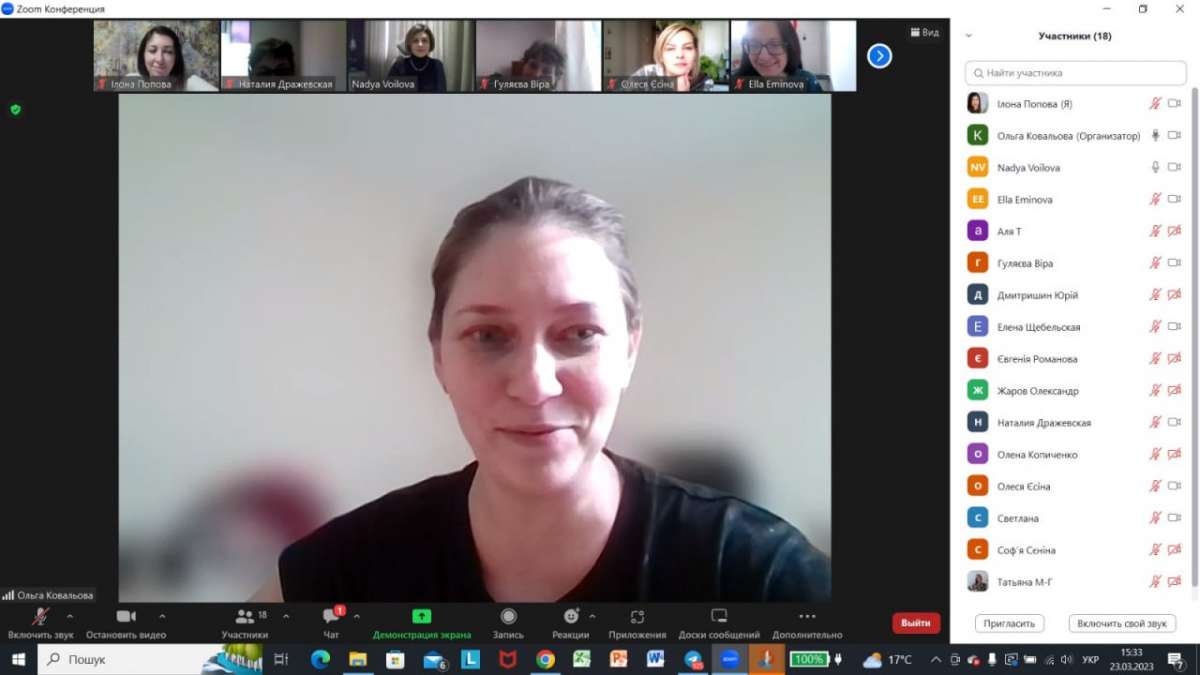 Висловлюємо вдячність від колективу кафедри психології та здобувачів Войловій Надії Анатоліївні та Ковальовій Ользі Вікторівні за організацію даного заходу, живому знайомству з напрямком психотерапії.