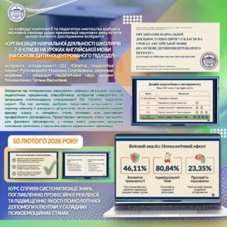 🧠 Під час доповіді здобувач обґрунтував актуальність теми, розкрив положення наукової новизни, визначив теоретичну та практичну значущість результатів, а також аргументував їхню достовірність. Особливу увагу було приділено впровадженню дитиноцентрованого підходу в організацію навчальної діяльності учнів 7–9 класів на уроках англійської мови.