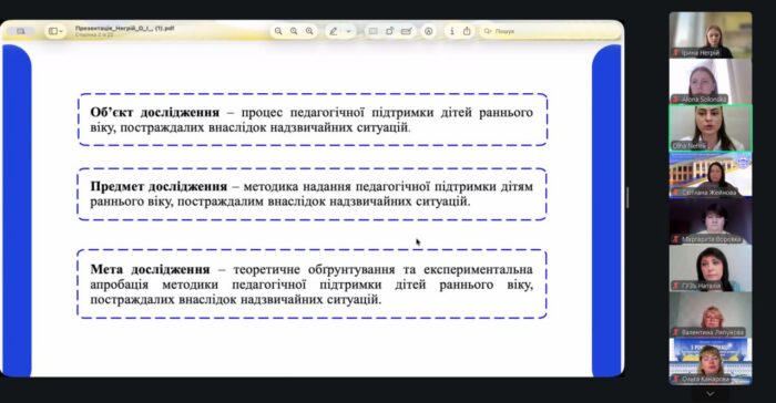 🧠 Під час доповіді здобувачка обґрунтувала актуальність теми, розкрила положення наукової новизни, визначила теоретичну та практичну значущість результатів, а також аргументувала їхню достовірність. Особливу увагу було приділено впровадженню педагогічної підтримки дітей раннього віку та педагогічного супроводу їх родин, постраждалих внаслідок надзвичайних ситуацій, зокрема повномасштабної війни в Україні.
