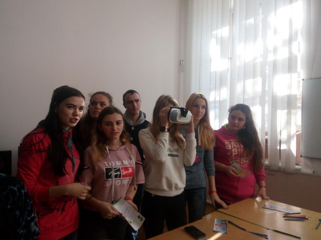 За допомогою окулярів віртуальної реальності наші гості могли відвідати вигаданий світ пригод або здійснити екскурсію факультетом інформатики, математики та економіки. Використовуючи мобільні пристрої і програму 3d Artist, школярі побачили доповнену реальність з віртуальним драконом, а у голографічній піраміді – рухому тривимірну голограму.