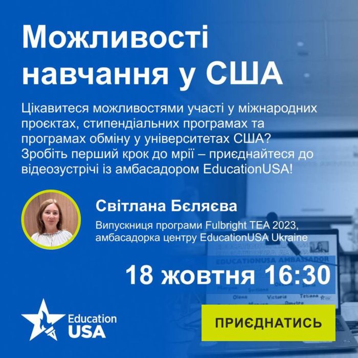 🙋🏻‍♀️💫Спікер – Світлана Бєляєва, Представник консультативного центру мережі EducationUSA в Україні.