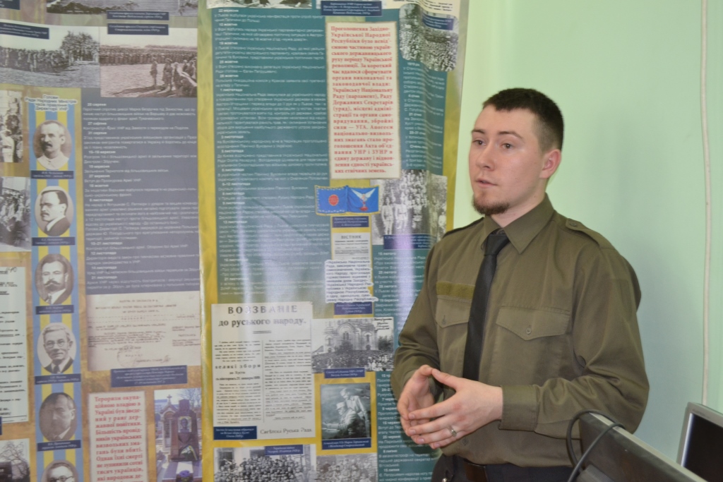 Матеріали експозиції студентам І-ІІ курсів спеціальності «Історія» презентували співробітники КМО «Меморіал» Володимир Грицаченко і Григорій Рій. «Народна війна» перед усім спростовує твердження деяких вітчизняних і зарубіжних політиків про те, що теперішня незалежність дісталася нашому народові випадково, внаслідок збігу певних геополітичних обставин, що вона не була наслідком тривалого прагнення нації до визволення. На основі архівних документів у виставці вперше виведена статистика визвольного руху 1917-1932 рр.: кількість підпільних організацій, повстанських загонів, збройних повстань та стихійних виступів селян.