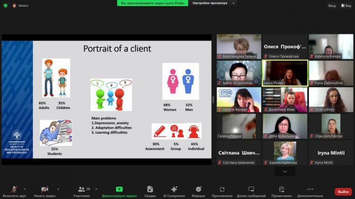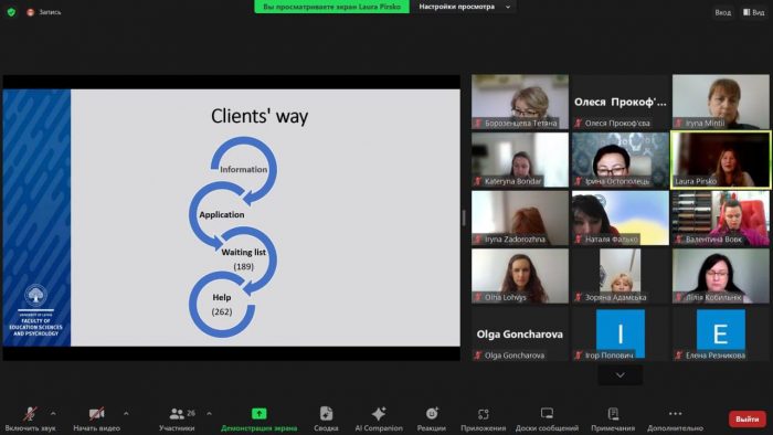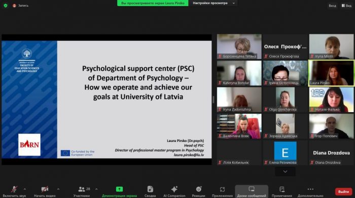 👥💫Так, 23 травня 2024 року відбувся черговий вебінар “Psychological support center of the Department of Psychology – how we operate and achieve our goals at Univerity of Latvia” (Центр психологічної підтримки факультету психології – як ми працюємо і досягаємо наших цілей в Латвійському університеті), який є частиною реалізації третього робочого пакету проєкту “Improvement of the Provided University Psychological Service” (Удосконалення роботи психологічної служби університету).