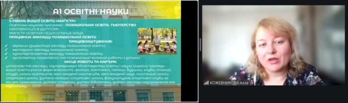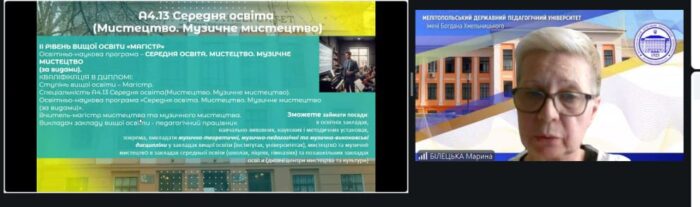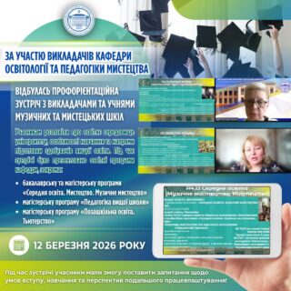🏛 Учасникам розповіли про освітнє середовище університету, особливості навчання та напрями підготовки здобувачів вищої освіти. Під час зустрічі було презентовано освітні програми кафедри, зокрема бакалаврську програму «Середня освіта. Мистецтво. Музичне мистецтво», у межах якої студенти здобувають комплексну мистецьку й педагогічну підготовку та проходять педагогічну практику.