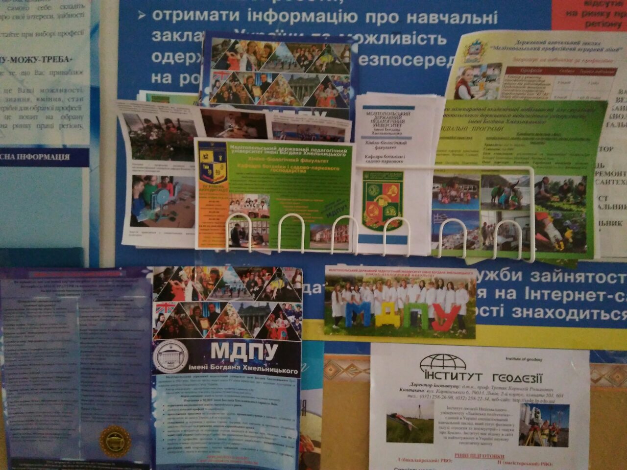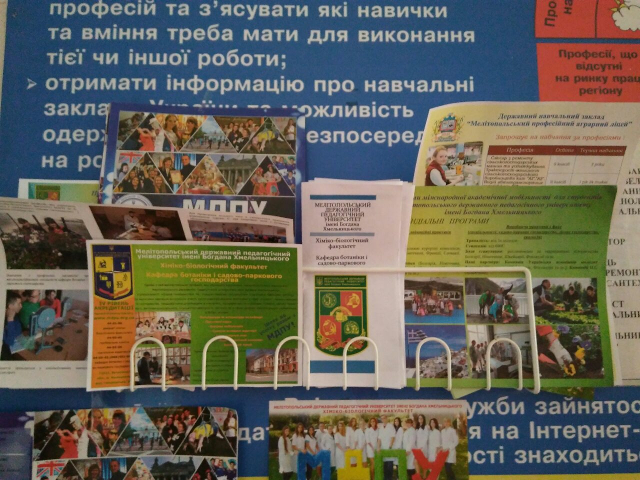 13 травня 2019 року науково-педагогічні працівники кафедри ботаніки і садово-паркового господарства доцент Пюрко О.Є., доцент Логвіна-Бик Т.А. та асистент Арабаджи-Тіпенко Л.І. провели профорієнтаційну роботу в Данило-Іванівській загальноосвітній школі І-ІІІ ступенів Мелітопольського району серед учнів 10 класу. Учні переглянули презентацію про Мелітопольський державний педагогічний університет імені Богдана Хмельницького.