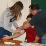 Під час заняття Михайло Григорович сформулював поняття про шок і непритомність; ознайомив з особливостями домедичної допомоги при кровотечах і пораненнях; навчив як розрізняти види кровотечі, зупиняти артеріальні та венозні кровотечі; обробляти рани; показав техніку накладання стерильних пов’язок підручними засобами.