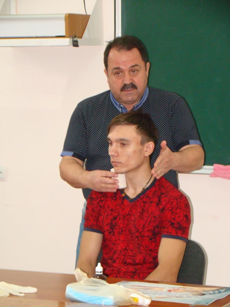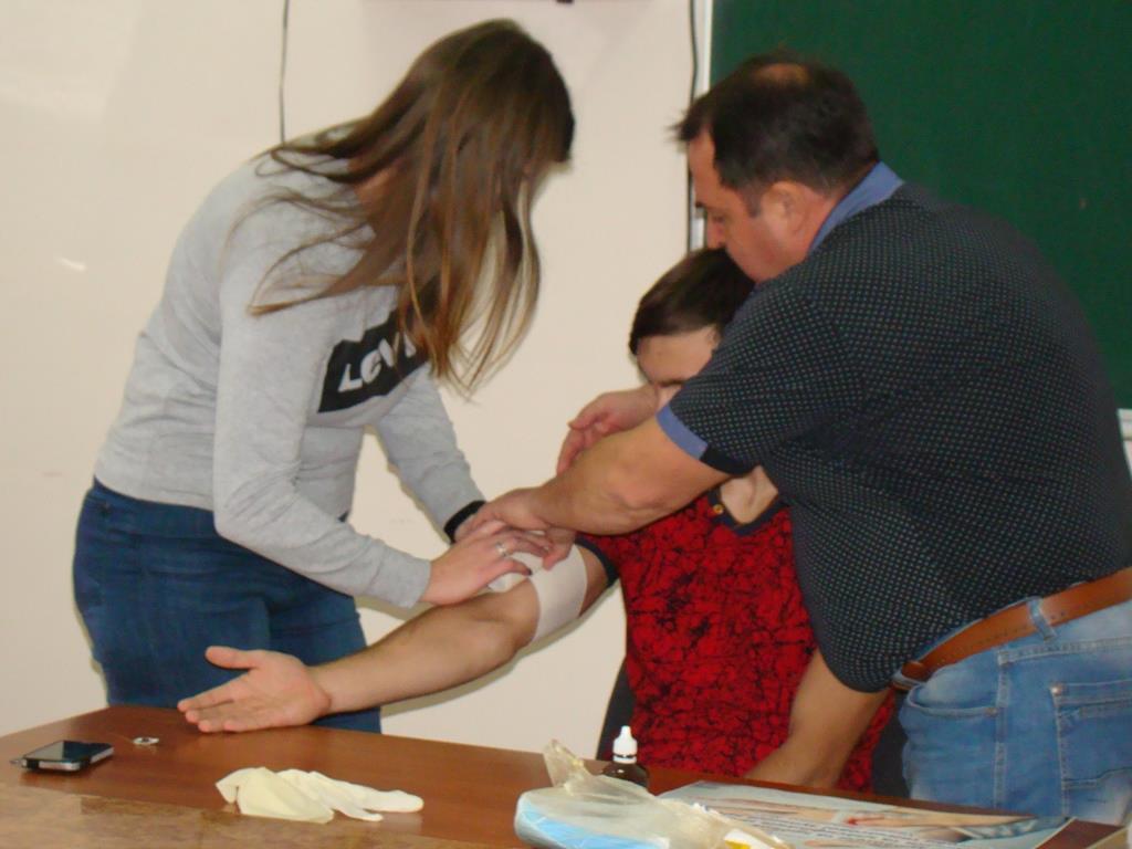 Під час заняття Михайло Григорович сформулював поняття про шок і непритомність; ознайомив з особливостями домедичної допомоги при кровотечах і пораненнях; навчив як розрізняти види кровотечі, зупиняти артеріальні та венозні кровотечі; обробляти рани; показав техніку накладання стерильних пов’язок підручними засобами.