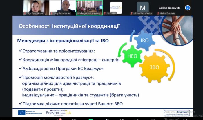 📌 розглянули особливості інституційної координації проєктів Еразмус+;