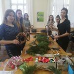 У ході практичної частини заходу дівчата під керівництвом професійного флориста Коваленко Д.В. створювали власний різдвяний вінок: вчилися працювати з клейовим пістолетом і декоративними матеріалами, запам’ятовували дизайнерські секрети, придумували композицію і комбінували кольори.